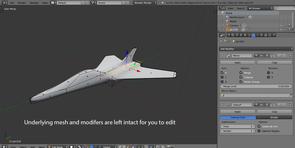 - Once done, you can then move on to edit the underlying basic mesh as the modifiers are left intact.