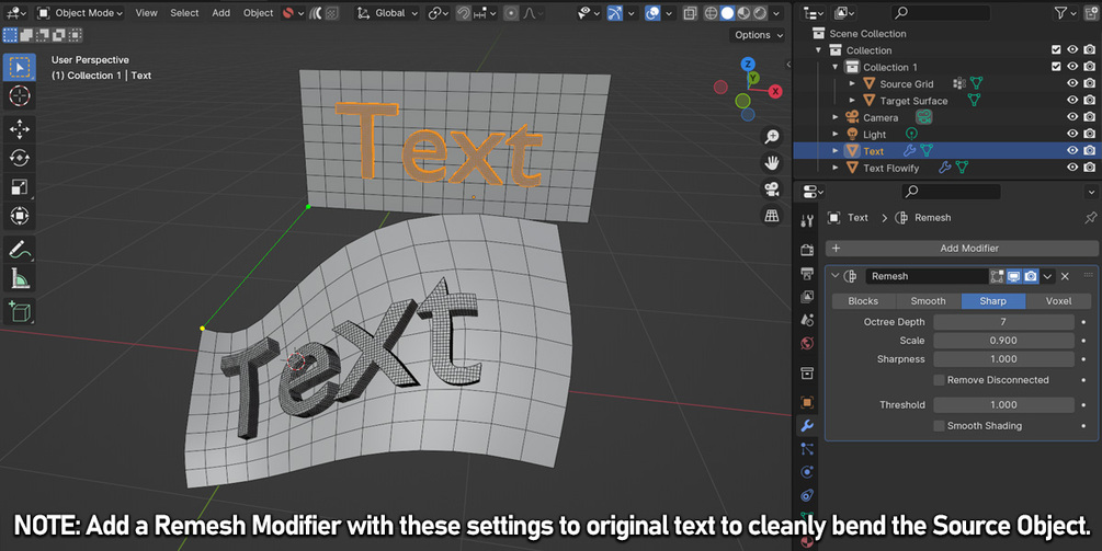 - Use on regular objects, instanced objects and text (As long as they have deformable topology).