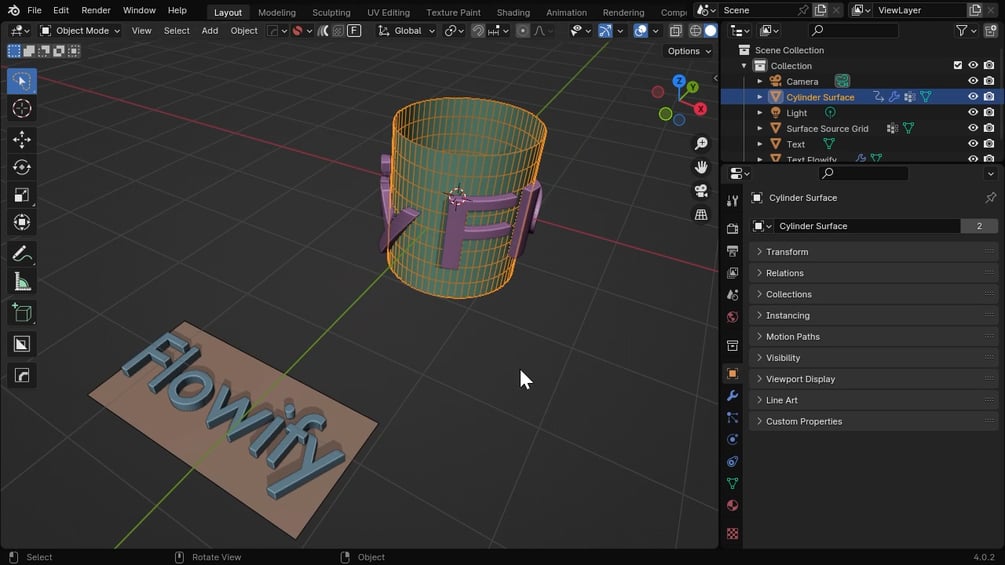 Flowify is a Blender add-on for 3D modelers that maps an object, called the Source Object, to a surface object with evenly spaced four sided faces and four corners, called the Target Surface. A flat reference grid object called the Source Grid is used to guide the add-on.